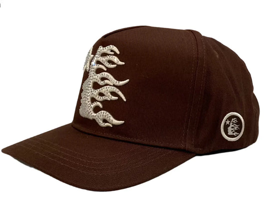 Hellstar OG Rhinestones Logo Snapback Hat Brown